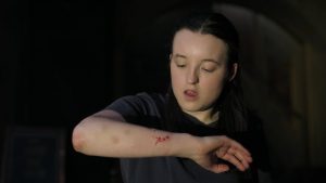 Ce que l’on voit en fin d’épisode lorsque Ellie poursuit Nora (Tati Gabrielle) dans ce même sous-sol scellé. Autant dire que les portes soigneusement fermées risquent de l’être un peu moins… et que l’infection pourrait bien se propager pour gagner les autres étages. Une scène bien connue des joueurs reprise fidèlement, tant dans son esthétique que son déroulement.